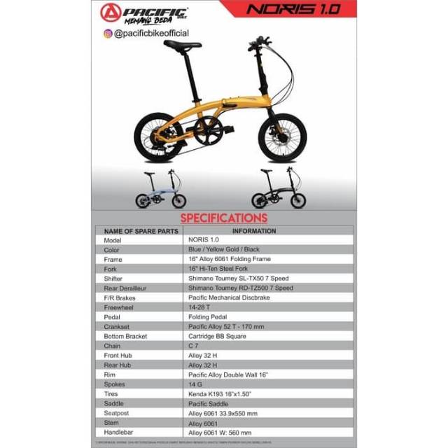 Jual Sepeda Lipat Pacific Noris 1 0 Ukuran 16inch Di Lapak Toko Sepeda Cahaya Rezeki Hr Cr Bike